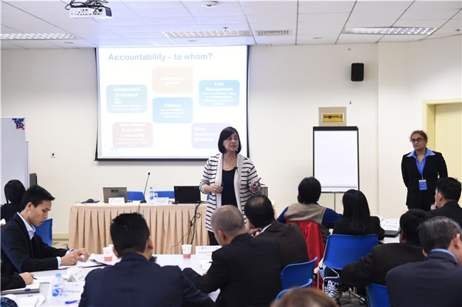 11月26-30日,由亚洲开发银行独立评价局与亚太财经与发展学院联合举办的上海国际发展评价培训项目(SHIPDET)主题课程在学院举行。本次培训吸引了来自阿富汗、印度尼西亚、菲律宾、尼泊尔、柬埔寨、老挝、巴基斯坦、斯里兰卡等12个经济体以及亚行的50余名代表参加。在为期五天的培训中,来自亚洲开发银行的首席评价专家Farzana Ahmed、资深评价能力建设顾问Brahm Prakash教授、资深评价专家Maya Vijayaraghavan,澳大利亚和新西兰政府学院Patricia Rogers教授、菲律宾发展研究院Aniceto Orbeta研究员等专家围绕评价理论、评价工具、影响评价、部门评价等专题做了系统讲授。此外,学院还特别邀请了复旦大学校长助理、公共预算与绩效评价中心主任苟燕楠教授做了题为“全面实施预算绩效管理,提升国家治理质量”的讲座,向代表们介绍了我国积极推进全面实施预算绩效管理的改革历程和进展。为帮助代表更深刻地了解以结果为导向的项目评价,本次培训现场教学安排代表们参观了苏州河治理项目梦清园,通过实地参观和与项目人员座谈交流了解上海在苏州河水污染治理方面取得的成绩。