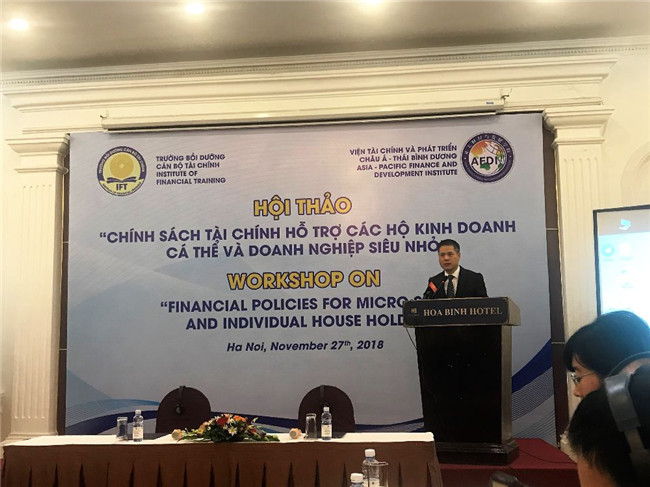 (撰稿:丁丽娟;摄影:IFT、王蕾)2018年11月27日,由我院与越南财政部财政干部学院(IFT)共同举办的中越“促进中小微企业与个体工商户发展财政政策”研讨会在越南河内举行。越南财政部财政干部学院黄成厚院长与我院卢文彬副院长出席了开幕式并致辞,来自越南财政部、税务总署、高校以及企业协会的近100名代表参加了此次研讨会。