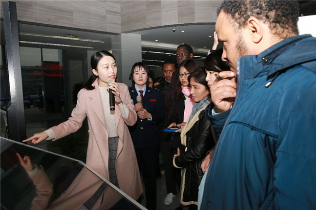 揭牌仪式后,留学生们参观了中国税收发展史展览,初步学习了中国税收发展历史,并深入学习体会了中国税收取之于民、用之于民的本质。参观后,留学生们还分别前往南通市行政服务中心办税服务厅以及南通市税务局12366呼叫中心开展了现场教学。办税服务厅集线上和线下办税功能为一体,主要承担纳税人的窗口业务、税法宣传咨询、权益保护等事项。留学生们亲自体验了微信扫码自助查询税收政策和网上办税等功能,并就感兴趣的话题与讲解员进行了交流。12366纳税服务热线是国家税务总局提供的全天候多功能语音服务,主要服务功能包括纳税咨询、办税指南、涉税举报、投诉监督等,是税务机关向纳税人提供纳税服务的重要手段和税务机关与纳税人、社会各界相互沟通的桥梁。留学生们认真听取了讲解,并现场观摩了呼叫中心工作实况。
