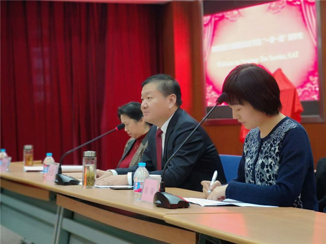 赵敏主任代表我院党委书记、院长李扣庆教授向佘局长以及南通市税务局其他领导和工作人员对此次教学活动给予的大力支持表示衷心的感谢,并向现场领导和嘉宾简要介绍了学院和留学生项目的背景情况。赵主任提到,“读万卷书,行万里路”,我院在加强专业技能培养的同时,特别注重通过《中国改革与发展现场教学》(Reading China)活动,不断深化留学生对中国经济建设、社会发展以及历史文化的了解和认知。南通是中国现代化港口城市、长江经济带的重要组成部分、是国家历史文化名城、中国近代纺织工业重镇。我院现场教学基地在南通市税务局的挂牌成立,标志着双方合作进入了全新的机制化阶段。希望通过双方的共同努力,使留学生深入了解中国的税收体制,了解中国民族工业和近代纺织工业的发展历史,了解中国的传统历史文化,深入学习“中国制造”,进一步透析中国改革开放四十来取得的各种经验与挑战。南通市税务局现场教学基地的成立,可将南通经验、南通品牌、南通制造传播到世界各地。也希望留学生们珍惜此次现场教学机会,仔细听、认真学、勤提问、多思考,圆满完成此次现场教学的目标与任务。