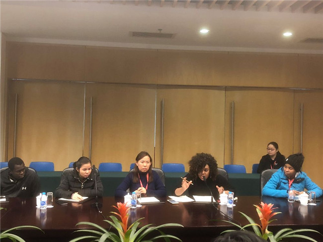 蔡志伟主任首先对参加会议的所有同学表示感谢,并欢迎大家对学院后勤服务建言献策。随后与会的11名各国留学生代表及2名研究生代表(研究生会副主席方相、生活部副部长王璐)分别就客房、餐饮、无线网络及学习生活等方面提出了宝贵的意见。