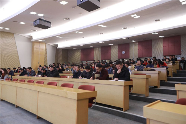 财政部人教司部属单位干部处王康同志代表人事教育司、国家会计学院董事会办公室对学院教职员工一年的辛勤工作表示感谢,并传达部党组书记、部长刘昆同志和党组成员、副部长程丽华同志对三所国家会计学院工作总结作出的批示。批示肯定了学院服务财政改革发展中心工作,坚持“建设国际知名会计学院”的办学目标,在党的建设、高端人才培养、财经智库建设、国际交流合作等方面取得的较好成绩,要求按照朱镕基同志题词要求,总结经验,加强党的建设,抓实政治建设,为高质量发展服务,在新的一年再创佳绩。