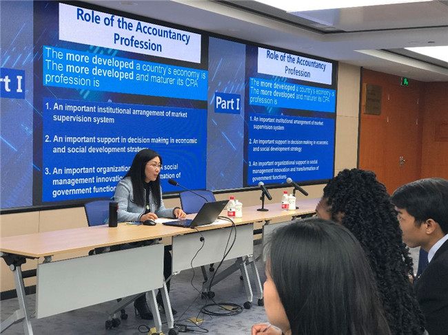 在接下来的讲座中,沈颖玲博士通过丰富翔实的数据向留学生们介绍了中国会计专业服务市场概况,并简要分析了行业的未来发展趋势,特别是详细分析了近几年中国会计发展战略与政策的变化情况。讲座后留学生们围绕内资所与四大会计师事务所的竞争挑战等话题与沈博士展开了深入交流。
