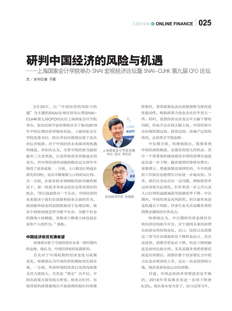 研判中国经济的风险与机遇——上海国家会计学院举办SNAI 宏观经济论坛暨SNAI-CUHK第九届CFO论坛【2019年5月刊,新理财】