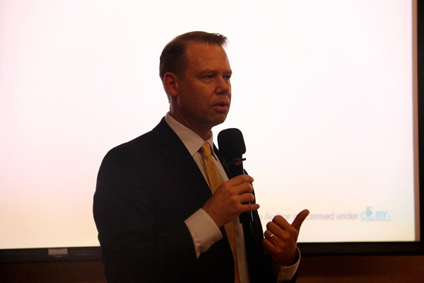 讲座伊始,库齐克先生首先介绍了他在强生公司十几年的工作经历以及自己的家庭情况,展示了自己在工作和生活中扮演的不同角色,由此引出了关于商业环境变化问题的讨论。他认为,目前各种新技术的运用和商业环境的变化,使得财务专业正在发生全方面的变革。库齐克先生和同学们分享了管理学大师彼得·德鲁克的一句名言,“Within five years, if you’re in the same businessyou are in now, you’re going to be out of business”,这句话揭露了一个事实,现代商业环境正在发生着日新月异的变化。库齐克先生也用自己的经历说明了这一点,他和他的商业团队研究显示,网上零售业的发展正在冲击强生公司的传统业务,即使是那些曾经被视为稳定成熟的业务。