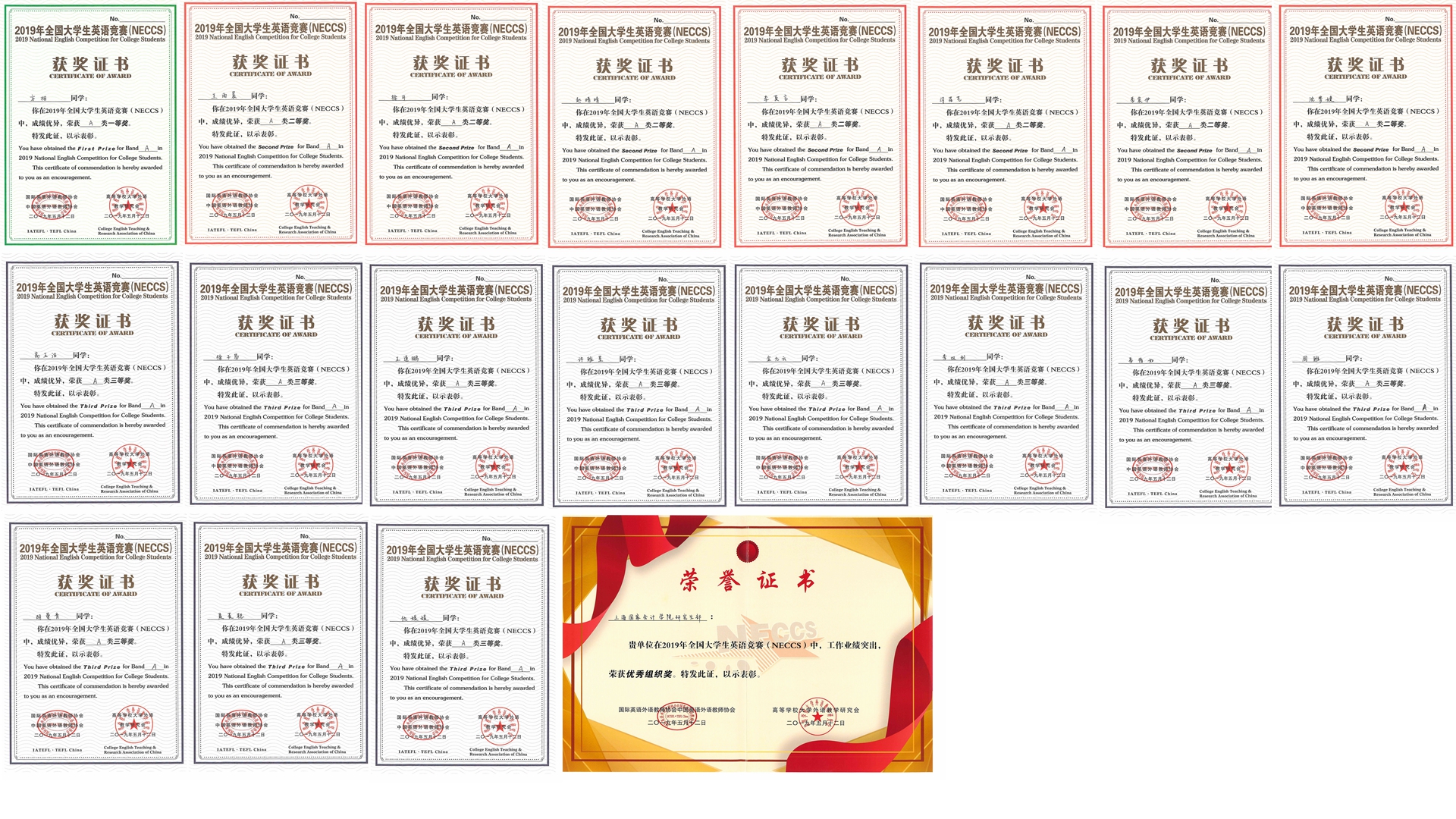 (通讯员:刘荣光)近日,全国大学生英语竞赛组委会公布了2019年获奖名单。学院全日制研究生在本次竞赛中再创佳绩,共有19名研究生获奖,其中一等奖1名,二等奖7名,三等奖11名。商务英语授课老师王志军教授因指导参赛研究生取得优异成绩获得指导教师荣誉证书,研究生部荣获2019年全国大学生英语竞赛优秀组织奖,刘荣光老师获得个人优秀组织奖。