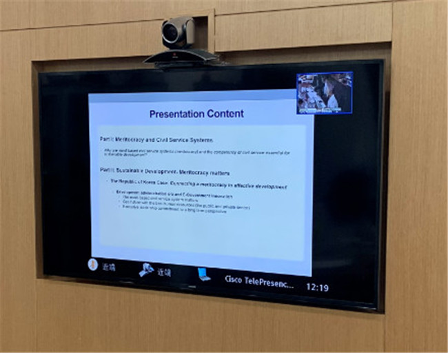 (撰稿/摄影:陈卓超)5月30日,由韩国发展研究院公共政策与管理学院(KDI School)举办的2019年混合式培训远程国际研讨会第一期通过远程视频会议的形式举行。我院8名教师以及来自全球其他11个国家的共160余名代表参加了研讨会。
