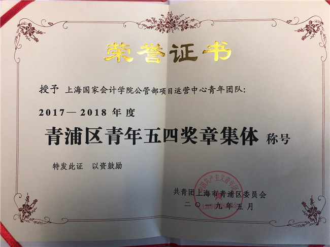 (撰稿 摄影/赵云燕)近日,青浦区2017-2018年度青年五四奖章(集体)评选落幕,我院公共管理培训部项目运营中心青年团队在参评过程中,凭借出色的团队综合素质、过硬的业务能力、卓有成效的青年岗位建功、通力配合支援首届进博会、服务财政部门中心工作、助力青浦人才梯队建设等几项突出工作,成功荣获青浦区五四奖章(集体)。