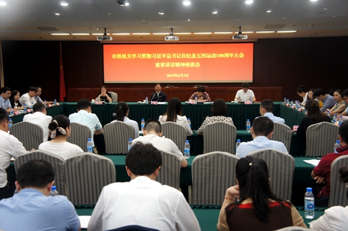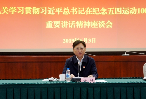 6月3日上午,市级机关团工委在市政大厦第一会议室召开“青春心向党 建功新时代”市级机关学习贯彻习近平总书记在纪念五四运动100周年大会重要讲话精神座谈会。市级机关工作党委常务副书记杨峥出席会议并讲话,市级机关工作党委副巡视员、直属机关党委书记田霞,市级机关工作党委组织部部长王朝霞出席会议。我院团委副书记胡晓栋与来自各市级机关各部门、中央在沪单位、各省市驻沪单位、行业协会商会等团组织负责同志和青年代表90余人参加会议。