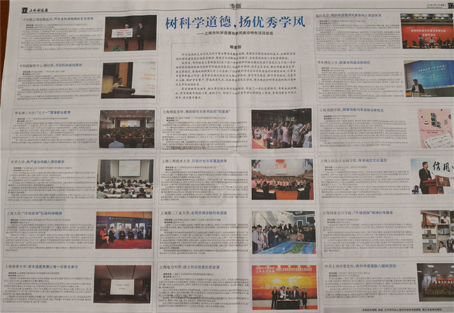 6月20日下午,在上海市科协和市教委举办的“弘扬爱国奋斗精神 争做科技创新先锋——2019年上海市科学道德和学风建设宣讲教育报告会”上举行了该评选的颁奖仪式。中科院院士、中科院上海分院副院长张旭研究员,上海交通大学刘西拉教授,上海市教委副主任毛丽娟,上海市科学技术协会党组成员、副巡视员黄兴华为获奖单位颁奖。上海三十多所高校和科研院所的600多名研究生、青年科技工作者、青年教师代表参会。优秀案例简介同时刊发在6月19日《上海科技报》和《东方教育时报》的科学道德和学风建设优秀项目介绍专版,“申小研”微信公众号等媒体也进行了报道。
