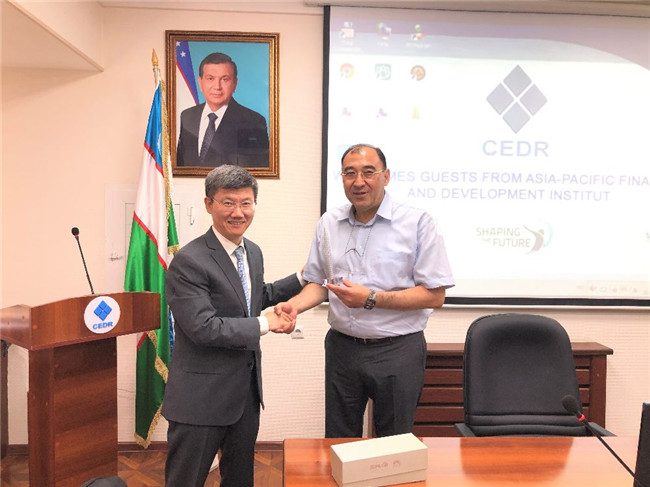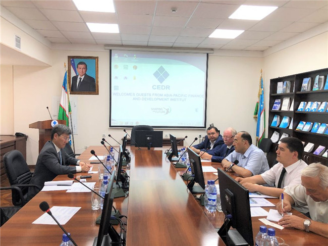 此外,李院长一行还于6月26日访问了塔什干国立经济大学(TSUE),并与塔什干国立经济大学副校长、科学与经济发展研究中心主任Durbek Akhmedov教授等举行了会谈。双方就在财经领域能力建设以及留学生教育等方面开展合作进行了探讨。