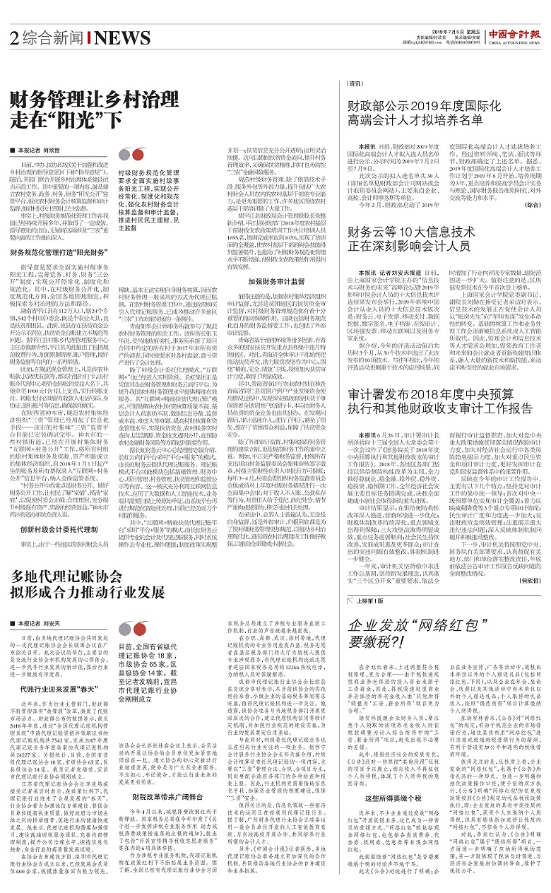 财务云等10大信息技术正在深刻影响会计人员【2019年7月5日,中国会计报】