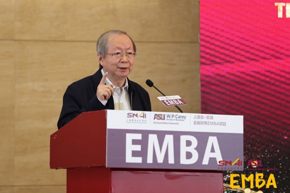 图片说明:上海国家会计学院和亚利桑那州立大学凯瑞商学院合办的金融财务EMBA毕业开学典礼论坛