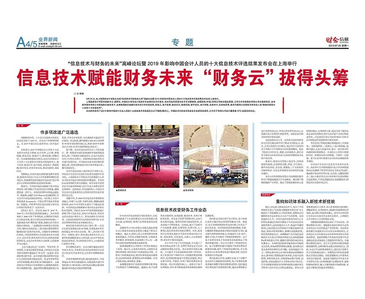 信息技术赋能财务未来“财务云”拔得头筹【2019年7月8日,财会信报】