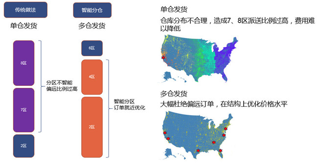 目前阻碍跨境电商发展的两大主因是物流成本过高、派送时间过长。为此,天籍信息副总兼CFO冯思源开始推动“智能分仓”项目:基于20亿条订单的大数据分析,保证产品按SKU实现最优路径派送,降低尾端物流成本达30%。用户只需要提供产品的长宽高重量,即可获得不加隐藏费用的全美一口价。