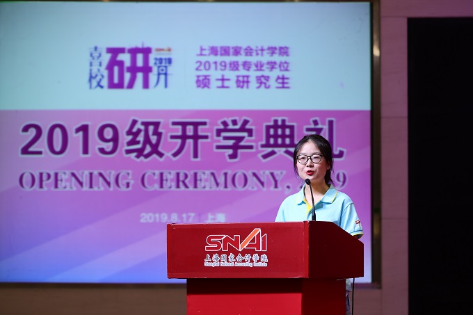 (撰稿:吴国强)2019年8月17日上午,上海国家会计学院2019级研究生开学典礼在国际会议中心隆重举行。学院党委书记、院长李扣庆教授,学院党委委员、副院长卢文彬教授,学院教师代表及2019级125名全日制研究生和43名非全日制研究生参加典礼。典礼由研究生部钟雪冰老师主持。