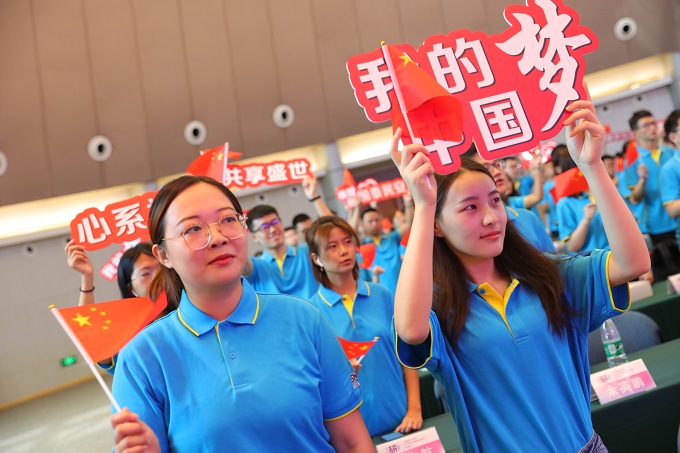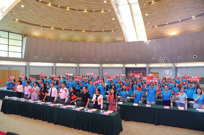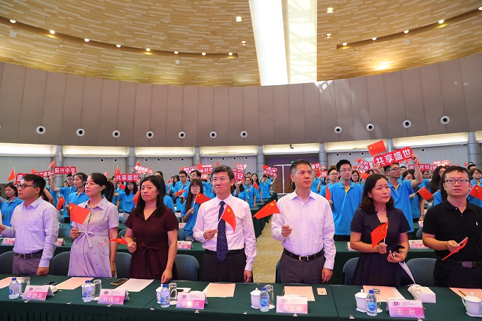 “我和我的祖国,一刻也不能分割……”今年恰逢祖国七十华诞,典礼仪式前,全体师生深情演唱《我和我的祖国》,用嘹亮的歌声表达对伟大祖国的美好祝福。