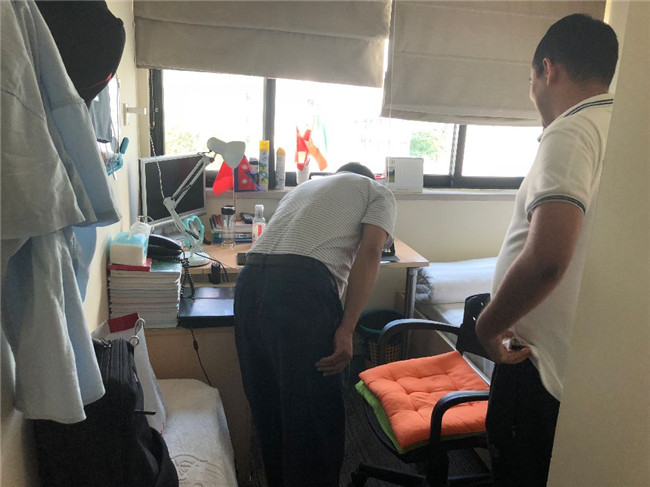 一行人随后检查了研究生公寓。研究生公寓因居住学生固定故参照居民小区垃圾定时定点投放,并由宿管员监督检查,发现垃圾分类错误、混投的,要求立即改正。一位研究生骄傲地说:“不到一个星期大家都掌握了垃圾分类知识,我回老家还和家里人宣传垃圾分类呢。”
