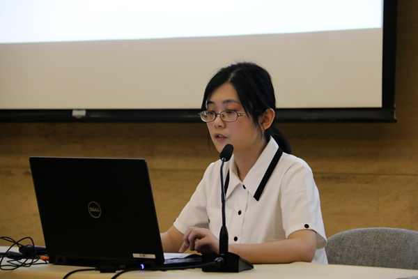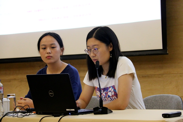 在大家热情的掌声中登台的是吴玥明和夏菱锶,两位获得了2018年研究生数学建模大赛三等奖。吴玥明首先回顾了数模大赛的过程和时间安排。紧接着,夏菱锶细致入微地分享了数模论文写作中应该注意的问题和解决的方法。然后,两位又提议大家要在文献的阅读中加入自己的思考并注重与组员之间的团结协作。最后,吴玥明还分享了自己备考CFA的经验,激励同学们在学习和准备实习以外的时间里多考取一些证书,锻炼自己学习能力,丰富自己的专业生活。