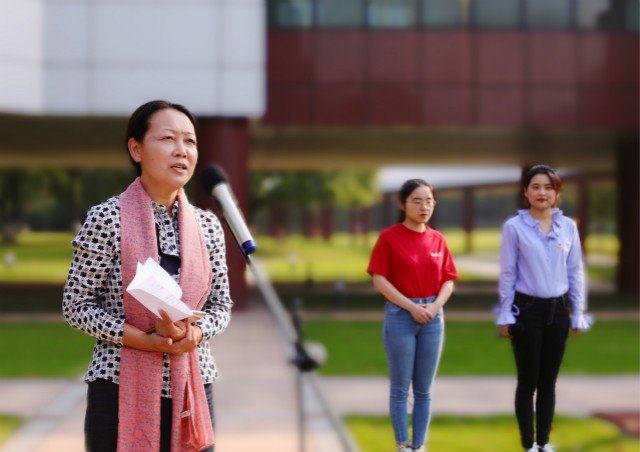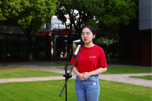 2019级党团员代表李曌同学在国旗下发表了题目为“回首往昔,展望未来”的演讲。她在演讲中回顾了祖国沧桑的往昔,描述了新中国70年后的强盛,列举了70年来新中国在政治、经济、文化、科技方面取得的耀眼成绩。李曌同学号召青年党员、共青团员们要像蓝天下翱翔的雏鹰一样顶着风雨前进,勇敢拼搏,让祖国以盎然身姿挺立于世界之林!