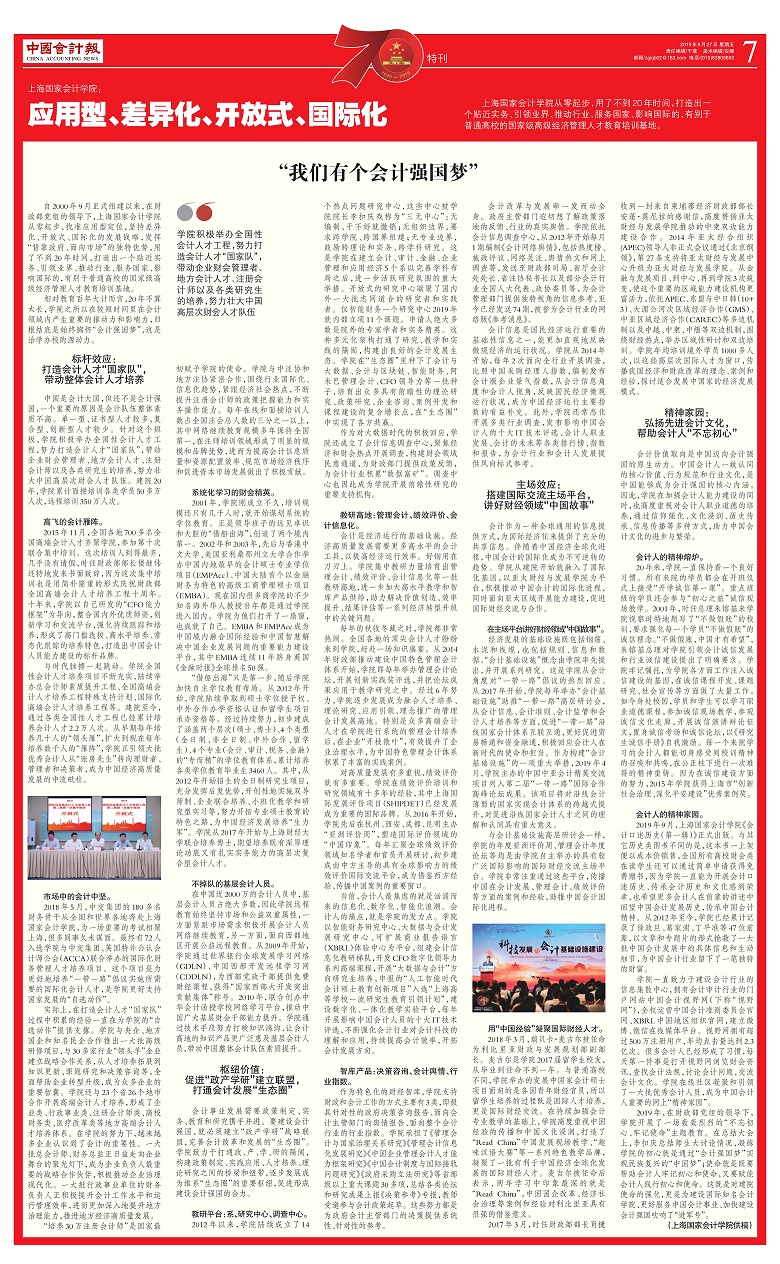上海国家会计学院:应用型、差异化、开放式、国际化【2019年9月27日,中国会计报】