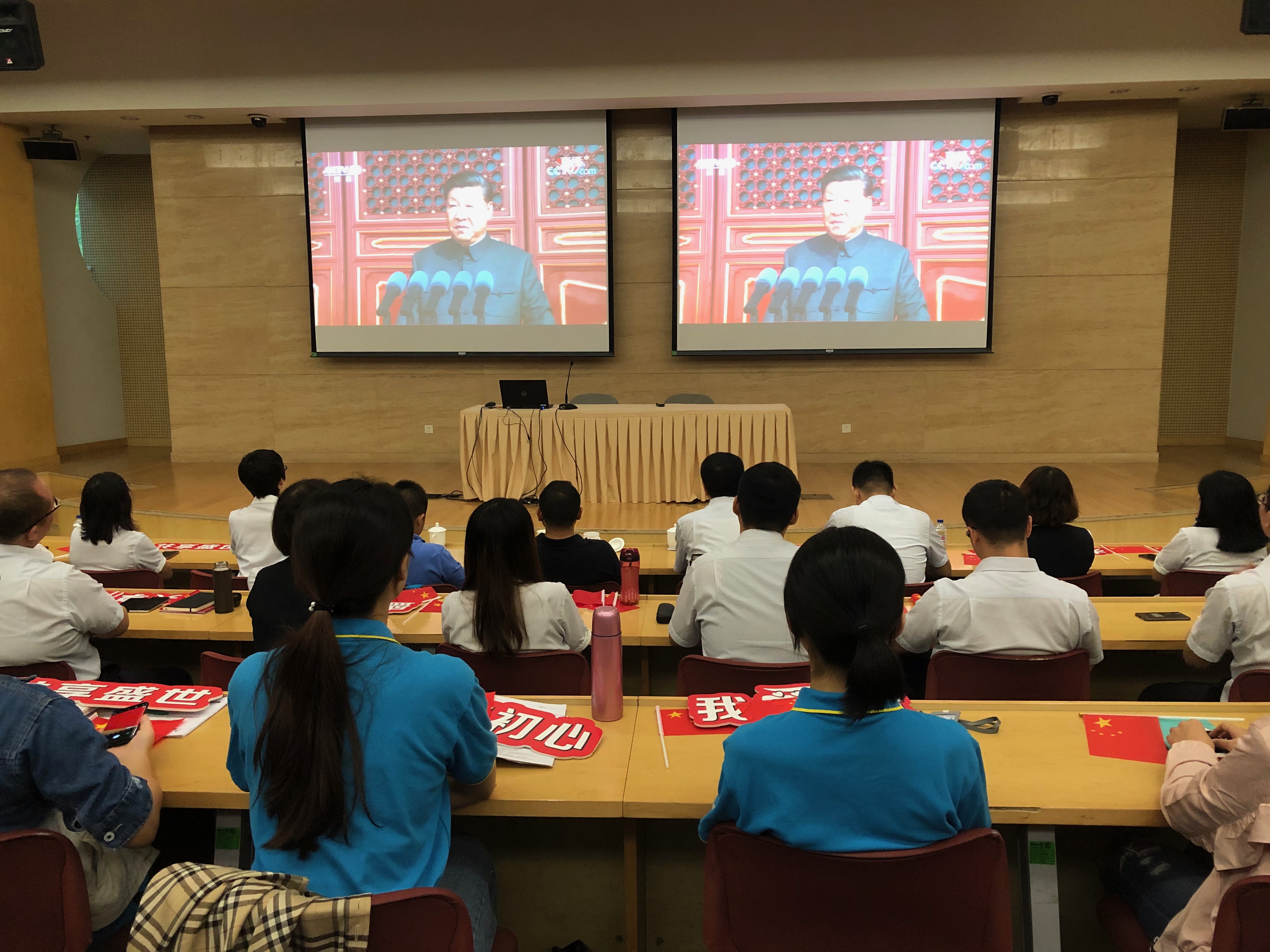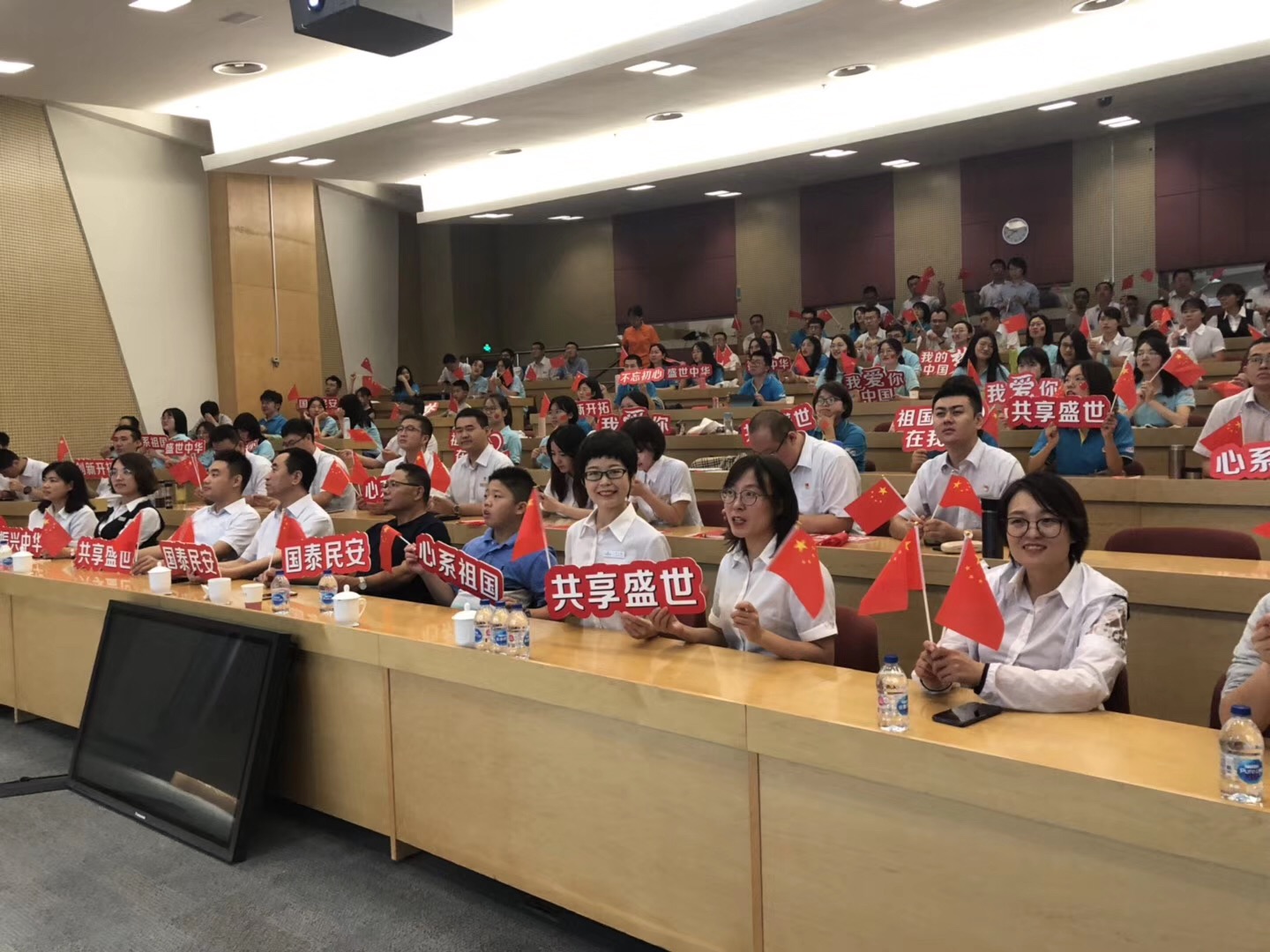 (撰稿:李阳)70年风雨同舟,70年砥砺奋进,新中国建立70年来,中华儿女携手奋进,共谱盛世华章。2019年10月1日,在这举国欢庆祖国华诞的日子,学院党委组织在院师生和职工代表在第三教学楼报告厅观看中华人民共和国成立七十周年庆祝大会、阅兵仪式及群众游行电视直播。学院党委委员易宏勋院长助理、学院各党支部教师代表、山西农信社青年干部培训班学员、全日制研究生、留学生和学院物业员工代表到场一同观看。