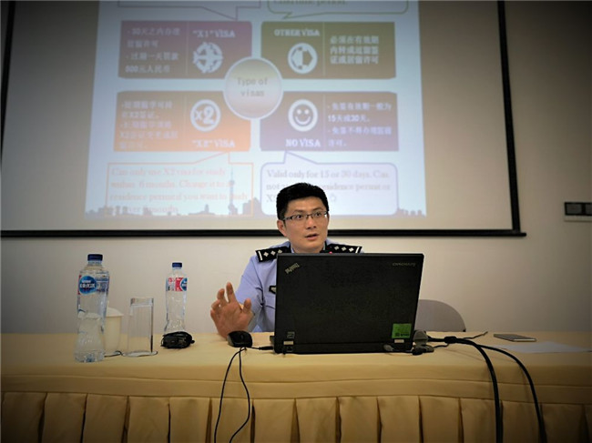 25日下午,上海市出入境管理局王韬警官和我院后勤部张晓燕老师分别为新生进行了外事安全讲座和后勤安全教育讲座。两位嘉宾分别以国家出入境法律法规以及宿舍和校园安全管理有关条例为主要切入点,向留学生们普及了相关安全知识。此外,后勤讲座中还对餐饮、文体等设施的使用和管理,保健室主要工作范围,快递寄取等有关事项进行了介绍和说明。