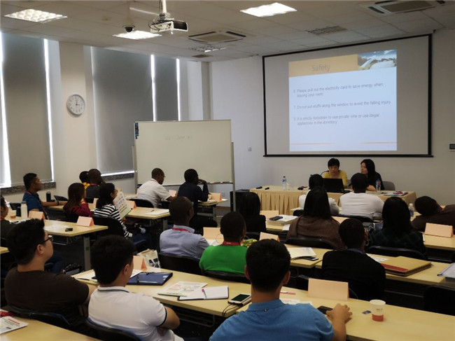 23日上午,留学生部开展了严格而细致的入学教育系列活动。首先简要介绍了项目总体情况和部门分工与职责,并分享了2018级留学生的在校学习生活情况。随后,留学生们也一一进行了自我介绍,相互认识。此后,留学生部向新生们进行了制度宣讲,牢固树立留学生遵纪守法的意识观念。