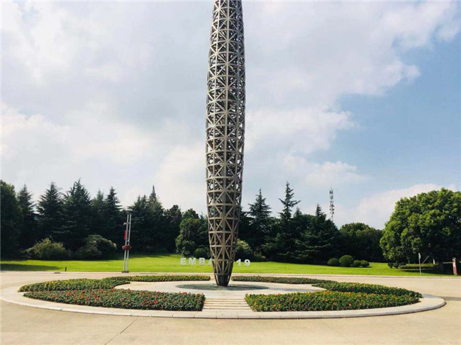 我院标志性建筑公正柱周围的景观布置则是以两种颜色的孔雀草及一串红三种花卉组成,烘托“独立客观公正透明”的校园文化。两处景点交相辉映,国中有家,家中有国,在国家的可持续发展下才有SNAI的高质量发展。