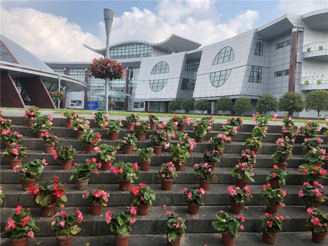 喜迎建国70周年 学院花卉换新颜