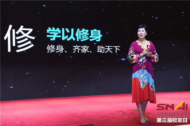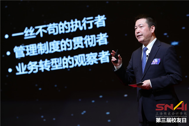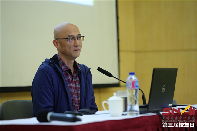 在学院国际会议中心召开的“第三届SNAI校友专题演讲”拉开了第三届校友日的帷幕。首先,上海国家会计学院党委书记、院长李扣庆教授发表致辞欢迎校友们回“家”。他以“我们有一个会计强国梦”为主题,回顾了一年以来学院的进步和发展。他指出,2019年对学院发展有重要意义,随着整个社会的学习行为、教育的技术支撑条件以及竞争强度的变化速度等学院发展所面临的外部环境发生根本变化,整个学院必须进行二次创业。2019年是学院全面深化改革的“元年”,学院以OAO建设、智库建设以及全面赋能三个方面为抓手推动实质性的改革内容。李院长表示,在学院改革的大背景下,学院的发展仍然延续着良好的趋势,不断打造具有标杆效应的项目,不断搭建高端的交流平台,不断扩大和强化学院发展的生态圈,不断地讲好财经领域的“中国故事”。最后他表示,梦想看似遥不可及,其实源于我们的相信和改变,学院的未来一定是可以预期的。