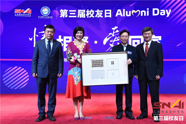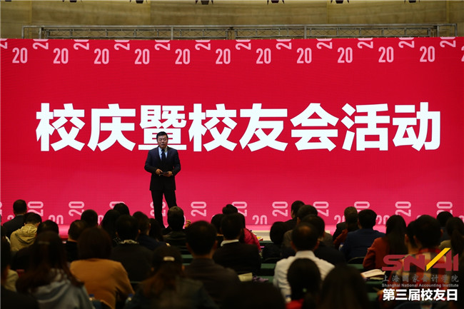 最后,上海国家会计学院党委副书记、副院长刘勤教授发布了学院20周年LOGO并介绍了2020年,即学院建校20周年全年校庆活动的组织安排。他特别指出学院20周年LOGO的设计理念,20和SNAI的元素以渐进的图像呈现,表明学院是冉冉升起初创的组织,同时20的中间嵌入了学校最突出的标志——公正柱,蕴含了学院不做假账的校训。全年的校庆活动计划包括专题展示、校庆论坛、感恩传承以及校友活动四部分。值得一提的是,学院正在制作首版校友卡,将陆续发放给所有校友,刘勤教授表示,校友卡是校友身份的象征、回家的钥匙、记忆的载体、交流的名片,也希望校友卡能够让校友们回忆起在学院度过的美好时光。