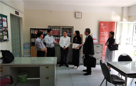 培训期间,易助理一行拜访了柬埔寨财经部,与Hean Sahib副部长、EFI的In Em院长就双方2020年合作事项进行了讨论,就合作内容达成初步意向。随后,易助理一行参观了EFI校园,实地考察了教室、图书室等设施,详细了解了EFI国际合作项目以及会计、金融等学科建设的情况。此外,易助理还亲切会见了来自柬埔寨央行的留学生校友,并与校友们就毕业归国后的职业与个人发展近况进行了友好交谈。