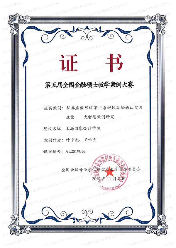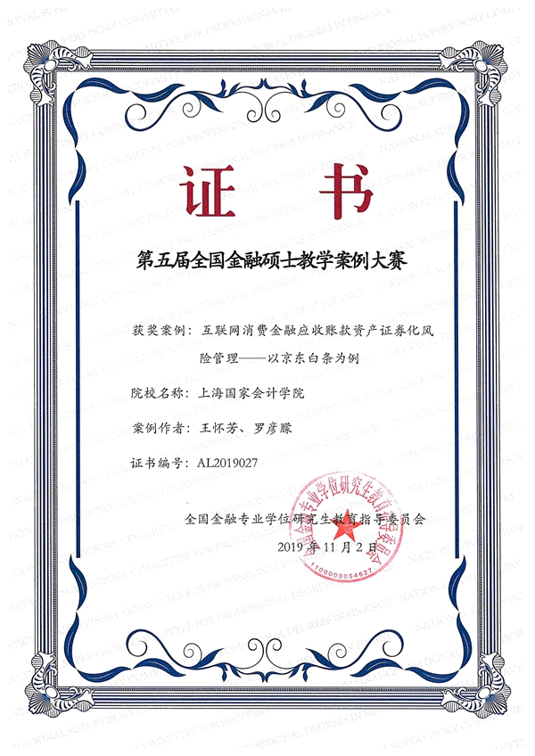 (撰稿/摄影:刘荣光,郑思敏)近日,第五届金融硕士教学案例大赛获奖名单在全国金融专业学位研究生教育指导委员会官网公示结束,我院王怀芳副教授撰写的《互联网消费金融应收账款资产证券化风险管理——以京东白条为例》和叶小杰副教授撰写的《证券虚假陈述案中系统性风险的认定与度量——大智慧案例研究》教学案例荣获全国优秀教学案例奖。这是我院自2018年取得金融学位授权点后首次参加全国金融专业学位研究生教育指导委员会组织的教学案例大赛并获得优秀奖项。