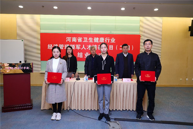 结业仪式最后,与会领导为优秀学员、优秀课题、优秀班委等相关荣誉颁发证书,并为全体学员颁发毕业证书。两年风雨,两年征程,河南省卫生健康行业经济管理领军人才培养项目顺利结业。两年太长,只争朝夕;两年太短,终身受用。愿未来的日子里,初心永志,使命常怀,希望项目学员毕业后继续提升个人综合能力,继续为推动河南卫生健康事业可持续发展做出应有贡献!