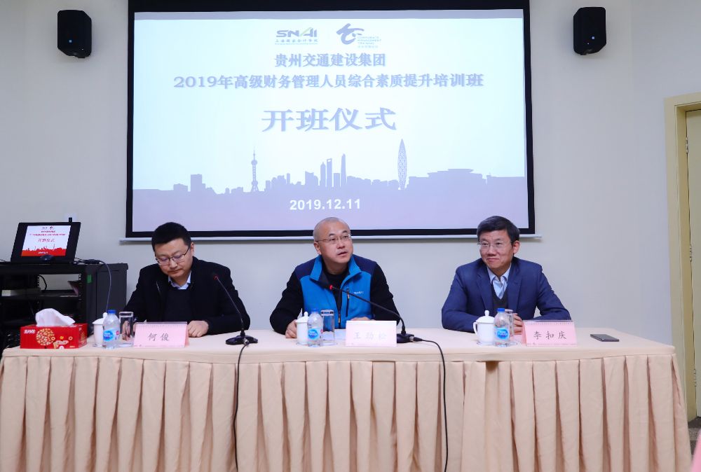 (撰稿:李萌,摄影:劳毅力)2019年12月11日,贵州交通建设集团2019年高级财务管理人员综合素质提升培训班开班仪式在上海国家会计学院成功举办。上海国家会计学院党委书记、院长李扣庆致欢迎辞,贵州交通建设集团有限公司党委委员、副总经理、总会计师王劲松出席开班仪式并发表讲话。开班仪式由贵州交通建设集团有限公司财务管理部副主任(主持工作)何俊主持。
