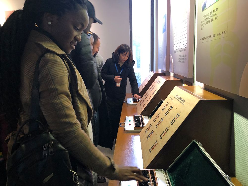 中国珠算博物馆馆藏珠算文物史料1万余件,是世界上最大的珠算专题博物馆。一个下午的学习,留学生们在时空的嬗变中,在历史与未来的交融中,感受珠算这个世界非物质文化遗产的悠久历史与深厚底蕴,了解珠算在社会经济发展中的地位和作用,了解新中国成立以后中国领导人对珠算事业的高度重视和珠算事业的蓬勃发展,看到珠算对世界文明做出的伟大贡献。在惊叹算盘精品的美轮美奂时,也感受到了中国文化的博大精深与灿烂辉煌。
