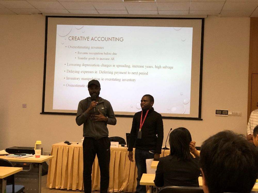 (撰稿:位豪强;摄影:陈宝莲、位豪强)《财务会计理论与实务》是一门实务操作性很强的课程,但它绝不是一门纯技术性课程。经济越发展,会计的促进作用也就越来越明显,会计越来越成为经济社会发展的重要因素。会计与我们的工作和学习也有着千丝万缕的联系。为了加强留学生对财务会计知识的理解,帮助他们在今后的工作中更好地应对相关财务问题,根据留学生部相关教学计划安排,2019级留学生于2019年12月上旬开始了第一门专业核心课《财务会计理论与实务》的学习。