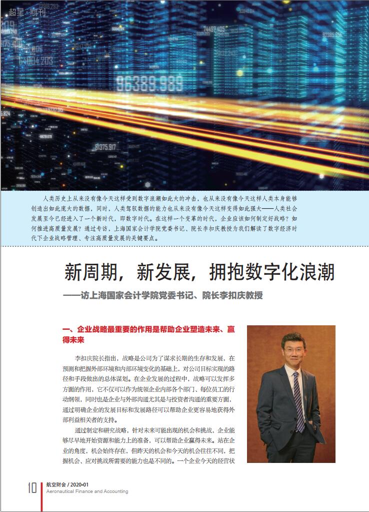 李扣庆:新周期,新发展,拥抱数字化浪潮——访上海国家会计学院党委书记、院长李扣庆教授【2020年第1期,航空会计】