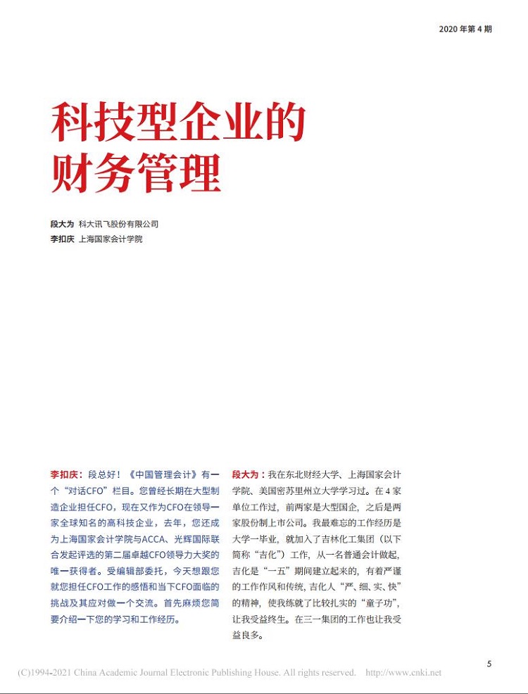 李扣庆:科技型企业的财务管理【2020年第4期,中国管理会计】
