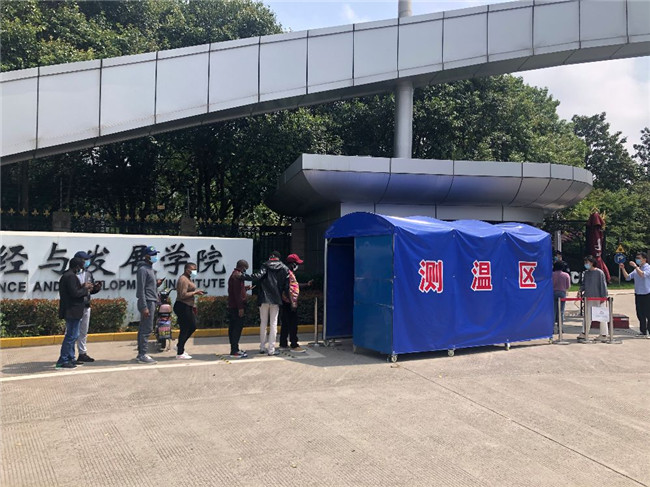 为了使得在沪留学生可以顺利地返回校园,同时也做好校园疫情的防控工作,留学生部对于学生的返校工作做了细致的安排,并为学生编制了详细的校园生活手册,对就餐、住宿、进出校园等方面制定了详尽的规则。后勤部也积极细化各项防控措施,并在学生返校前开展了各条线的演练,确保学生平稳、有序、安全返校,坚决筑牢校园安全防线。