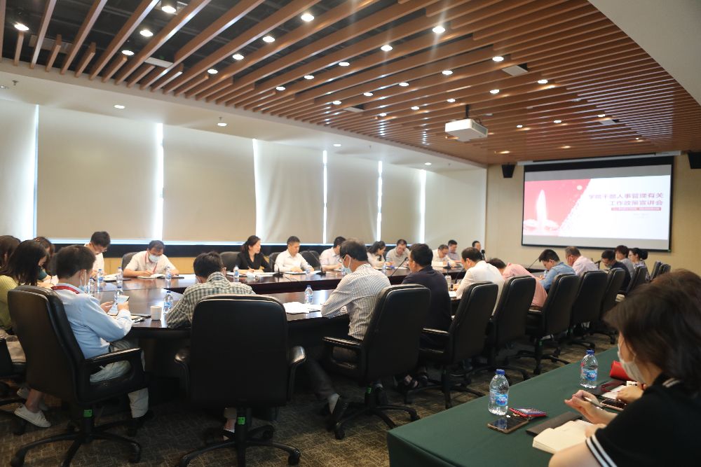 为深入贯彻落实中央从严管理干部精神,严格执行《关于进一步做好部属单位干部人事管理工作有关事项的通知》等文件要求,学院于5月21日组织召开了干部人事管理工作政策宣讲会,着重就干部人事档案管理、因私出国(境)管理进行政策宣讲,以及后续干部人事管理工作进行部署落实。学院党委委员、副院长卢文彬同志以及各部门主要负责人、行政秘书出席会议,会议由党办(院办)马丽娜同志主持。