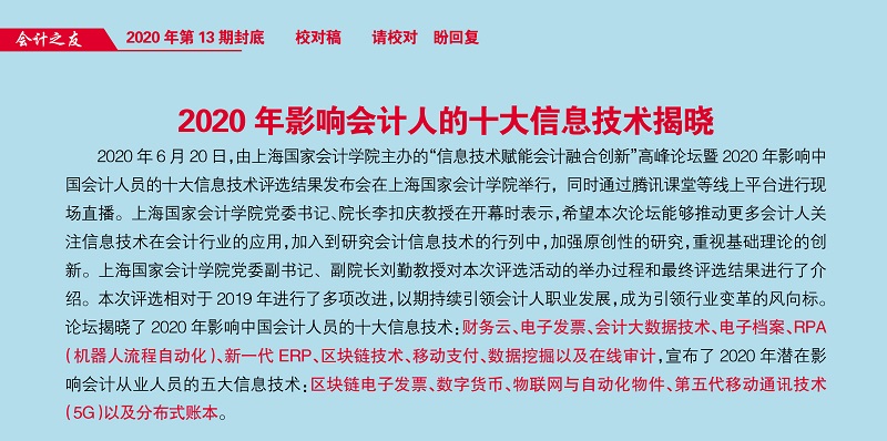 2020年影响会计人的十大信息技术揭晓【2020年第13期,会计之友】