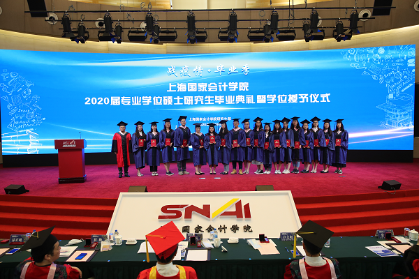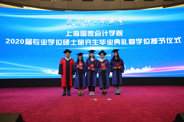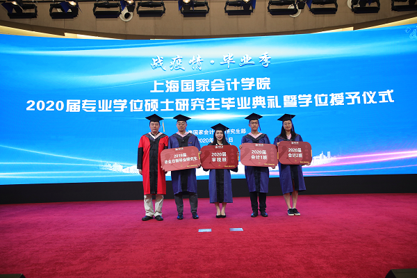 2020年6月29日上午, 2020届专业学位硕士研究生毕业典礼暨学位授予仪式在学院国际会议中心举行。上海国家会计学院党委书记、院长李扣庆教授,党委副书记、纪委书记、副院长刘勤教授,党委委员、副院长卢文彬教授,党委委员、院长助理易宏勋老师,学院教师代表、校友代表、研究生部全体老师出席典礼,2020届134名毕业生参加典礼。毕业典礼由研究生部主任郑德渊副教授主持。典礼在庄严的国歌声中拉开帷幕。