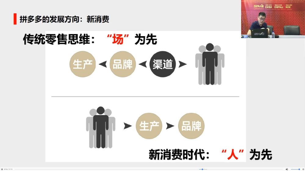 在民营经济遭受重创的大环境下,民营企业的当务之急是找到真正适合自身企业的发展模式,从疫情危机中生存并寻找长足发展的机会。拼多多,上海的本土互联网公司,从创立至今不到5年的时间,便作为电商中的后起之秀一跃成为国内用户数第二大的电商平台,其采取的商业模式与运营机制必有值得学习与借鉴之处。王院长从拼多多的发展历程、在疫情中所受影响及其应对措施等多方面对拼多多进行了深入浅出的讲解,从超短链、新产品、新品牌到县市长的直播带货,为广大听众解开了拼多多发展势头如此迅猛的谜团。其中王院长特别强调拼多多的超短链与新品牌计划的商业模式,该模式下企业一改传统的经销方式,给传统环节做减法,减少冗余环节,配套品牌设计,为最广大用户创造价值,让“多实惠,多乐趣”成为消费主流。