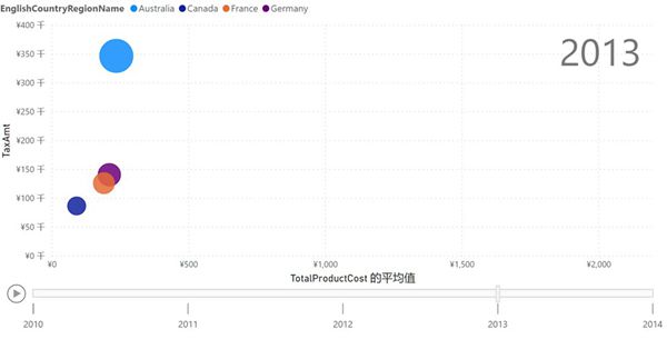 商业智能则是很多同学提到的特别感兴趣并且想要学习的一个部分,在这一部分,张中举老师通过亲手操作,带我们学习如何将复杂又枯燥的数据,变成简单又直观的图表。不同于Excel等的静态图表,通过向下钻取和筛选功能,Power BI可以实现交互的查询与图表展示,运用在商业环境中可以提高数据处理和沟通效率。此外,通过Power BI的散点图(气泡图)可以展示五维的数据并实现动态播放,如下图所示,我们可以直观地观察到X轴、Y轴、图例、不同时间以及气泡大小所代表的数据。