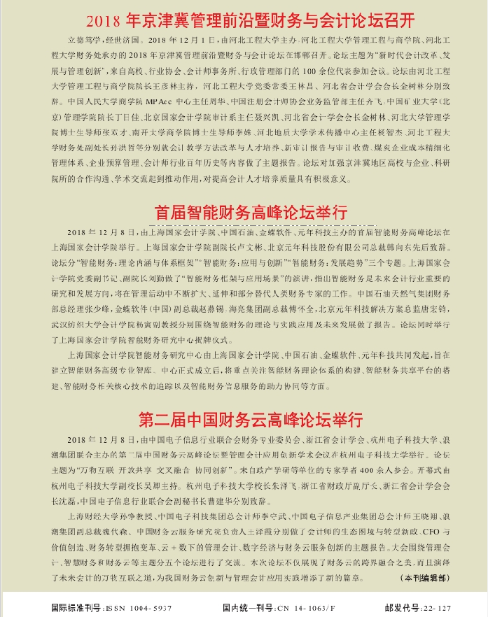 首届智能财务高峰论坛举行【2019年第1期,会计之友】