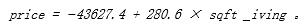 上述的运行结果表明该地区的房价与房屋单位面积呈正相关,即在其他条件相同的情况下,随着房屋面积的增大,房价越来越高,具体的模型为: