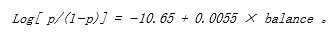 上述的运行结果表明在其他条件相同的情况下,额度越高,欠款的概率就越大,具体的模型为: