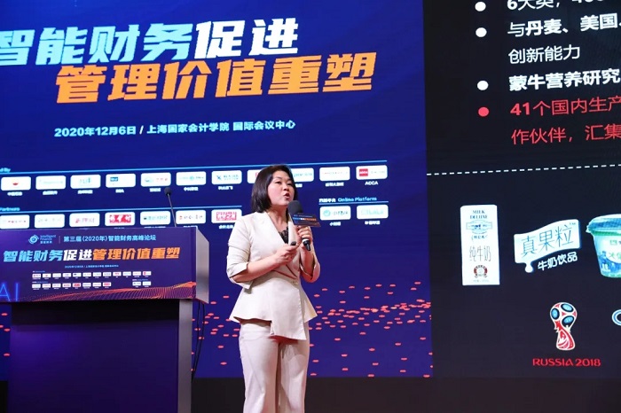 蒙牛集团财务共享服务中心高级总监李秀丽介绍了蒙牛集团财务战略规划,其中财务愿景是成为持续推动公司价值增值的国际化专业水准的卓越财务团队,财务使命是规范作业、控制风险、支持业务、提升价值。在智慧财务转型的进程中将财务划分为战略财务、运营财务以及共享财务。在财务战略规划驱动下,也在不断促进蒙牛智能财务转型。借助于RPA和AI技术,财务共享中心、预算管理系统、资金管理系统、发票管理系统、税务共享中心以及合并报表系统得到协同贯通,以此构建互联互通的智能财务体系。